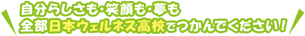 通信制高校に進学する理由はお一人お一人違います。日本ウェルネス高等学校は皆さんの個性を大切に育て、人としての力・魅力を作りながら高校卒業をめざします。