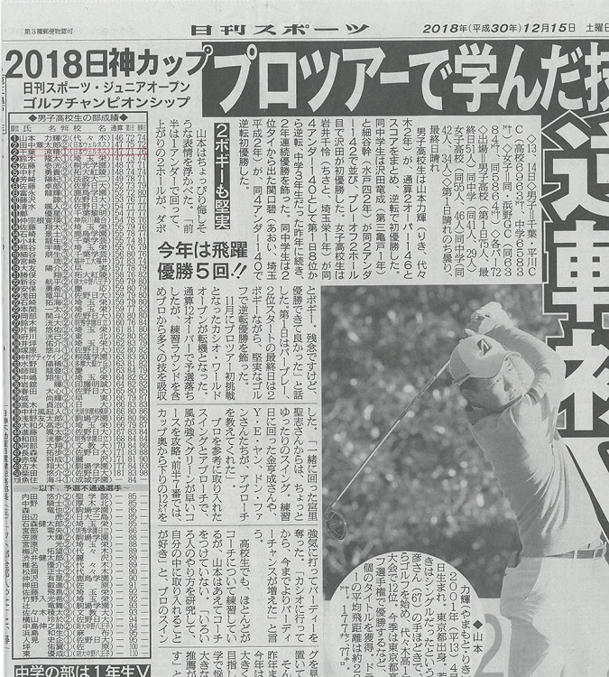 12月15日の日刊スポーツ新聞にこの結果が掲載されました。