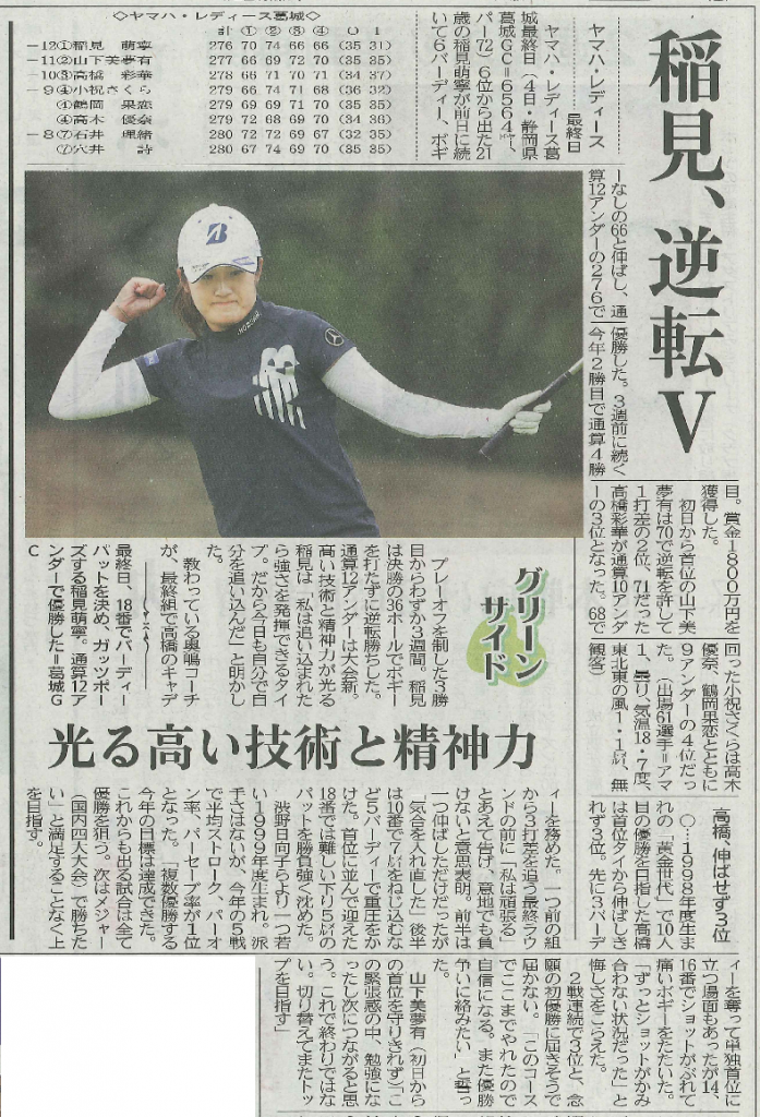 - 2021/04/27稲見萌寧さん 通算6度目のツアー優勝!!【卒業生の活躍】
