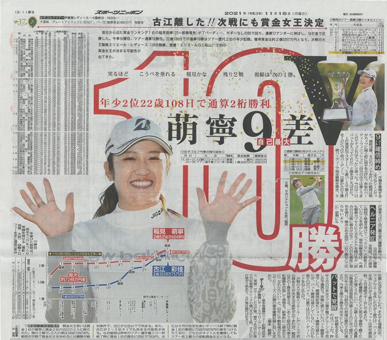 - 2021/11/15稲見萌寧さん、通算10勝達成!