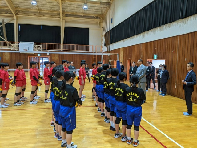 本日、本校女子バレー部と笠間市で行っていた部活動地域移行事業の視察でスポーツ庁の室伏長官がお越しになりました!