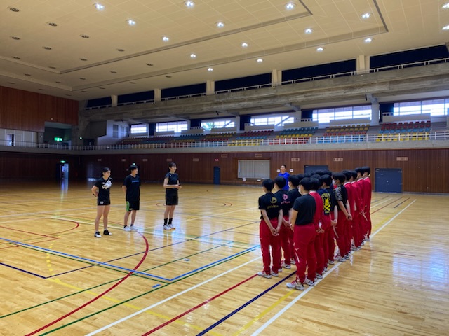 関東予選の激励に、Vリーグ選手3名!昨年度卒業生の日立リヴァーレ所属の生井澤さんと戸澤先生の教え子で東レアローズ所属の樫村さんと群馬銀行所属の小林さんが練習に来て下さりました✨