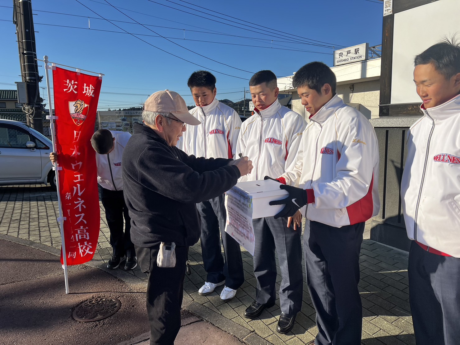 今日の7:30~9:00にかけて、友部駅、笠間駅、岩間駅、稲田駅、福原駅で、募金活動を行いました。
