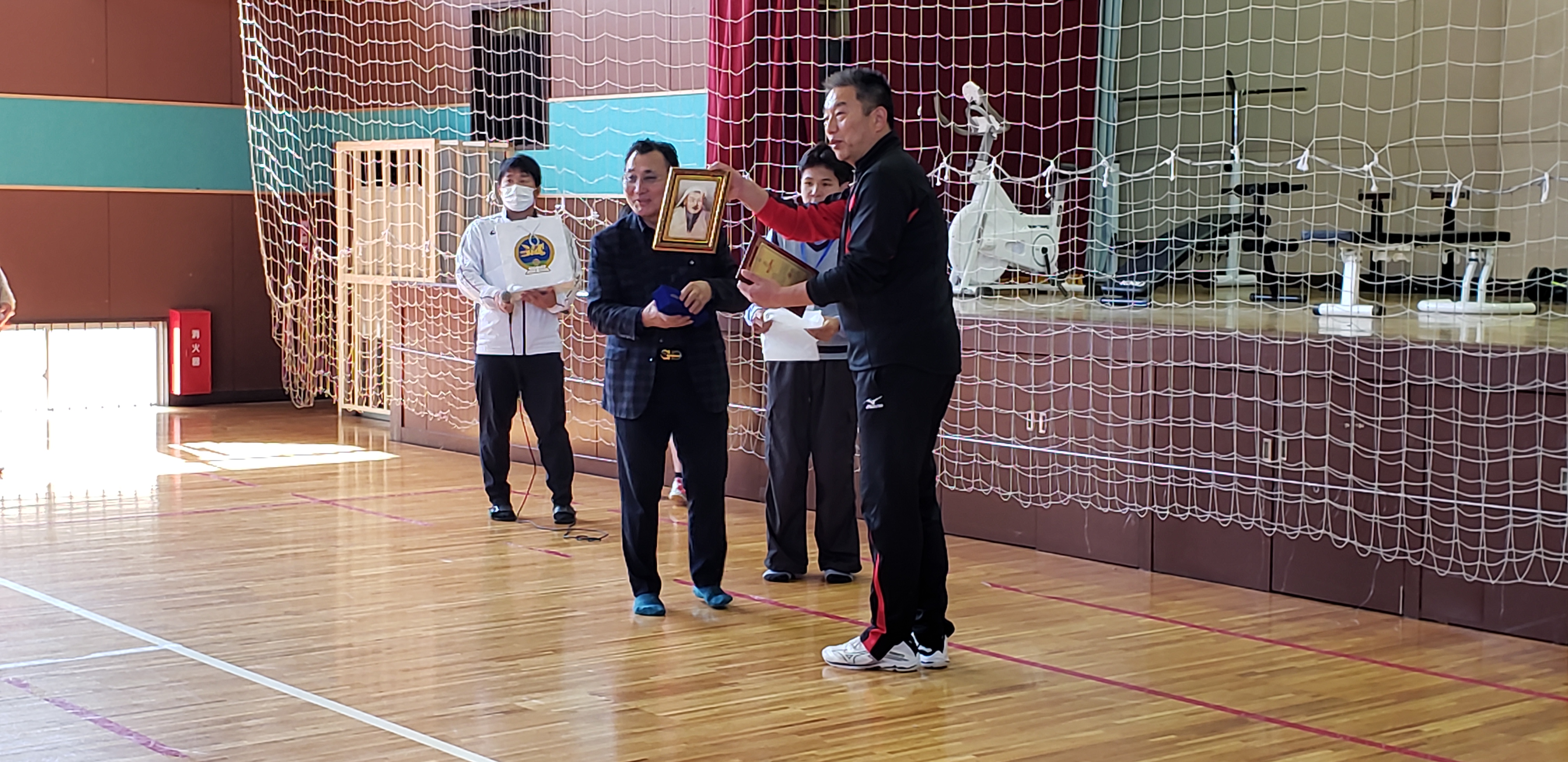 私達からは手作りのメッセージカードとおりがみをプレゼントし、モンゴルの方達からは記念品としてチンギス=ハンの肖像画と馬頭琴をいただきました。