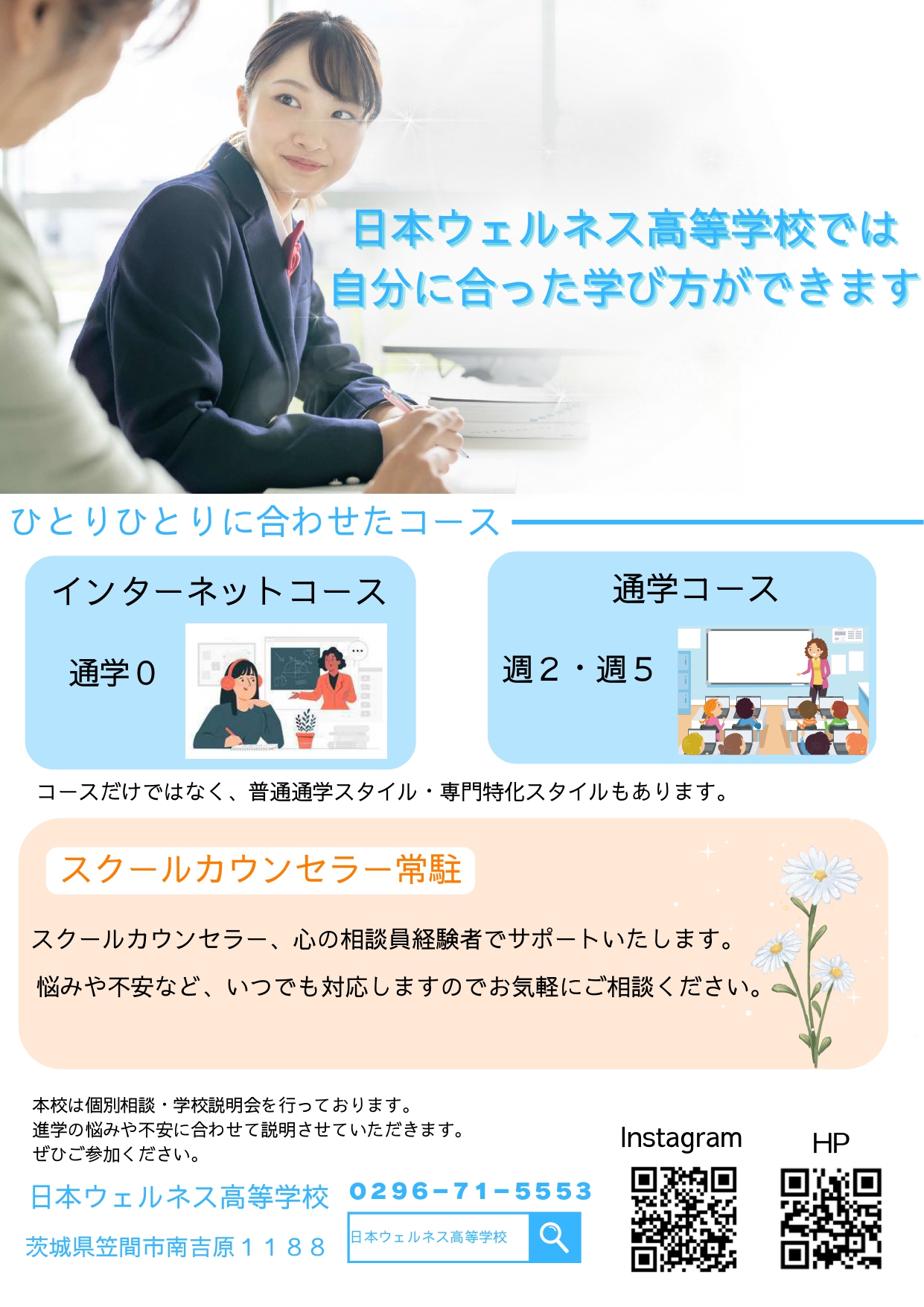 進学に悩みや不安など、いつでも対応しますのでお気軽にご相談ください。
