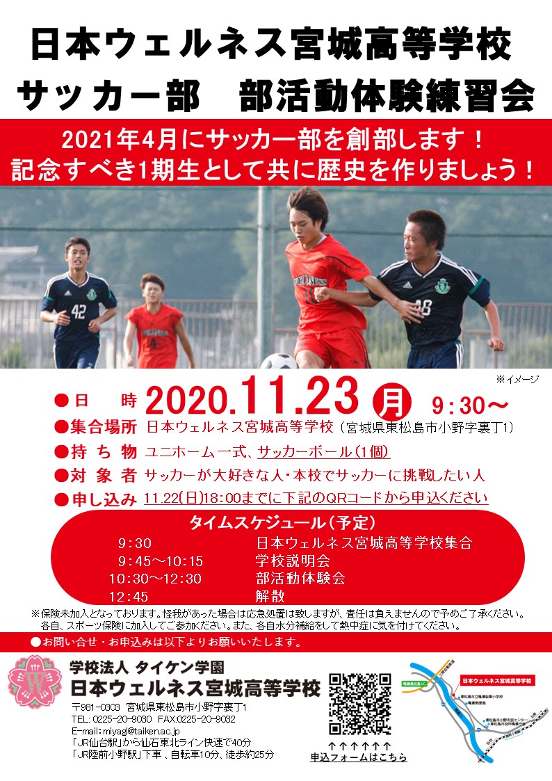 11月23日(月)に実施いたします、サッカー部の体験練習会の詳細が決定いたしましたのでお知らせいたします!