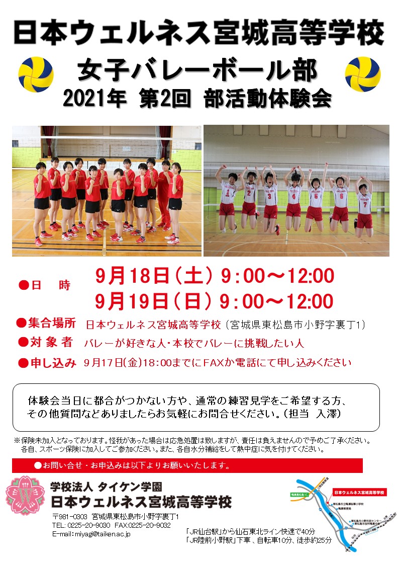 女子バレーボール部の部活動体験会を行います。是非お越しください。