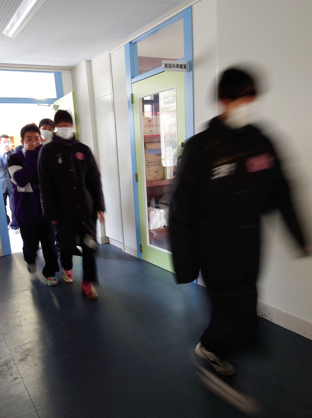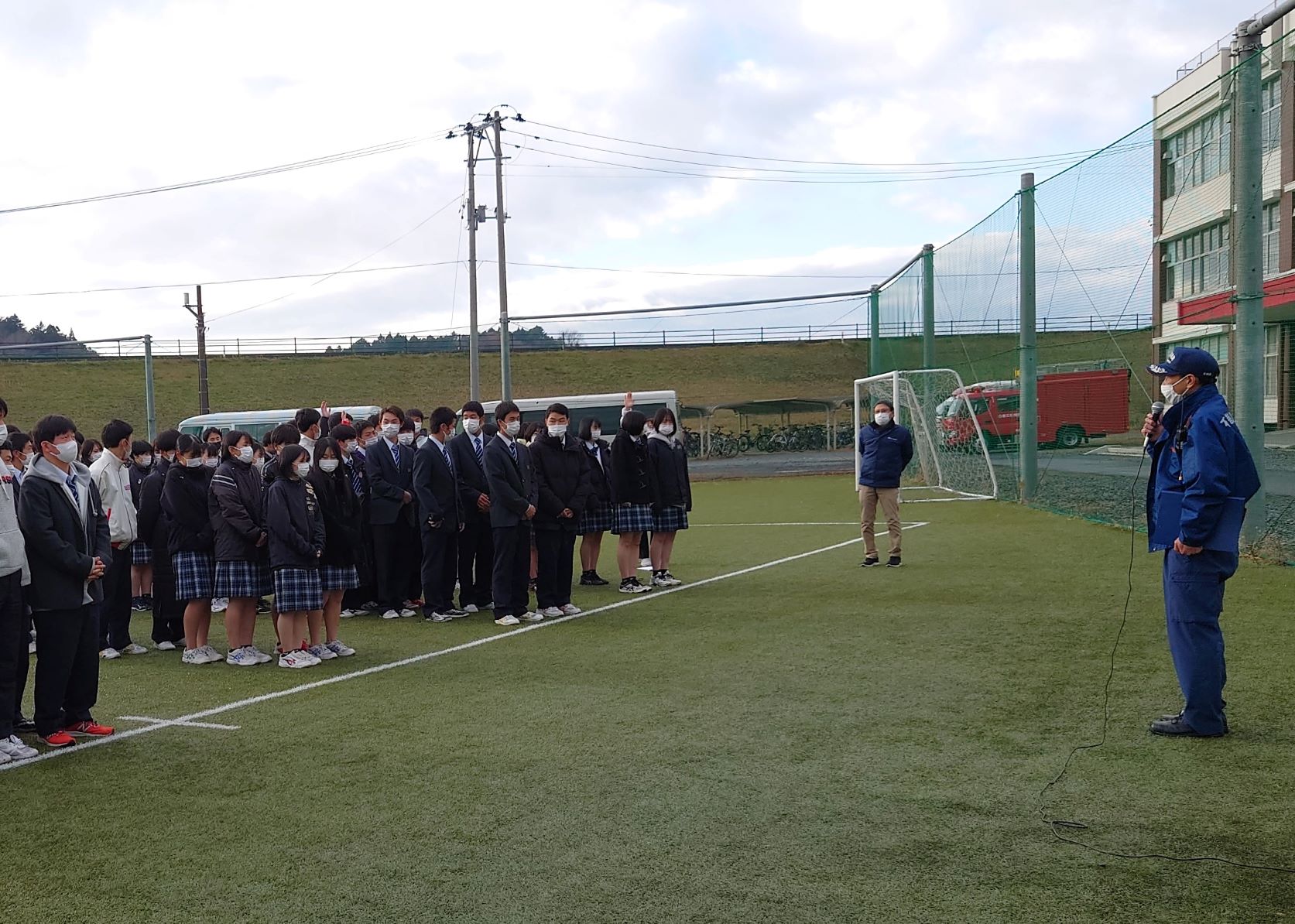 家庭科室から出火想定の訓練でしたが、直前まで調理実習をしていた1年生は、指示や手順を確認しながら避難していました。他の生徒達も注意事項や避難方法を確認しながら避難できました。