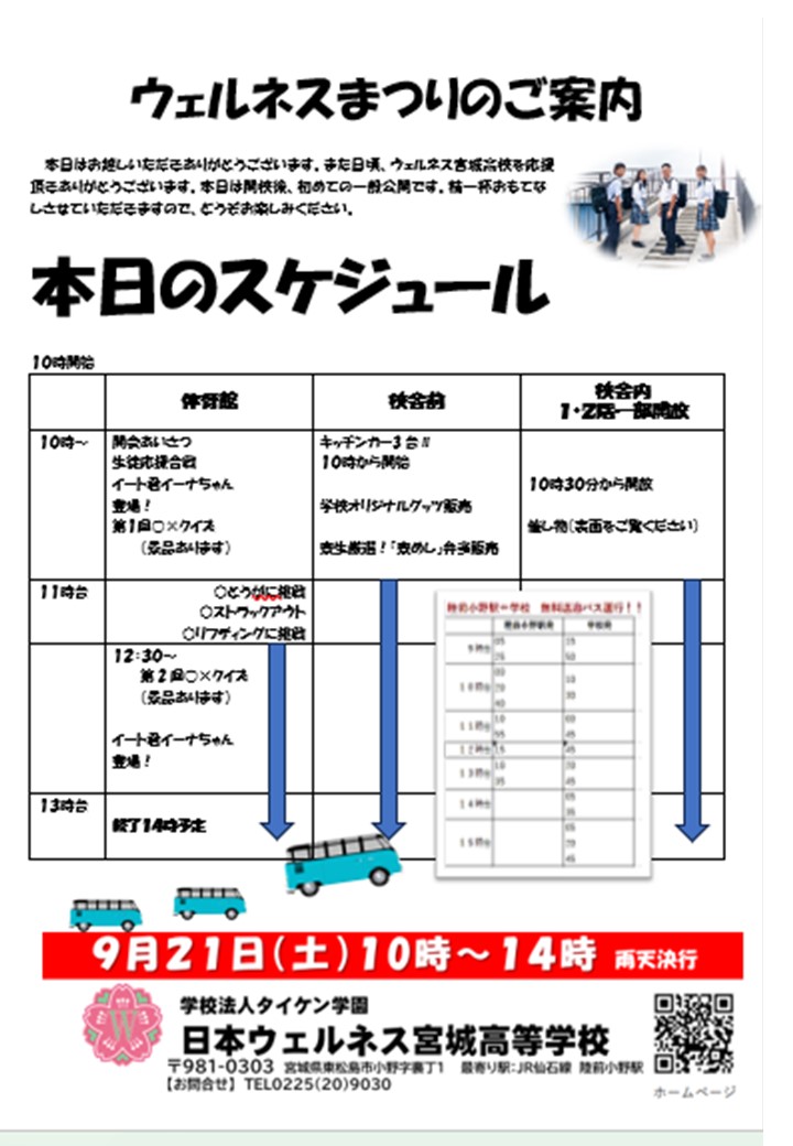 ウェルネスまつり行います! おはようございます。 今日はウエルネスまつり! 行います!! 遊びに来てください! 本日21日10時開始です。 はじめに体育館でオープニングセレモニーを行います。 ◀ 前の記事 | 2024年の記事 | 次の記事 ▶