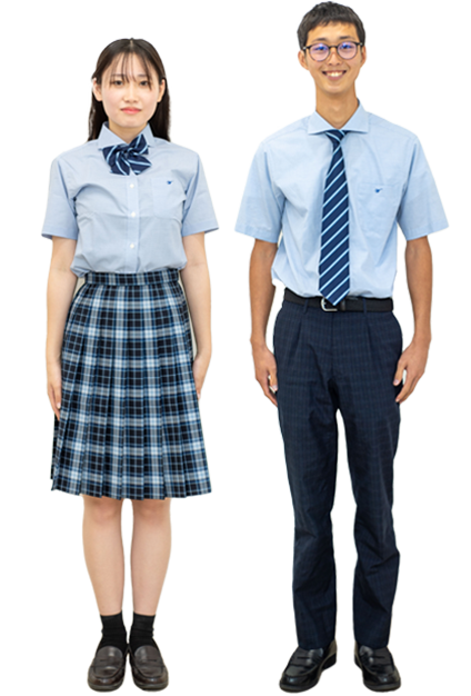 男子のネクタイと女子のリボンは爽やかなストライプ。