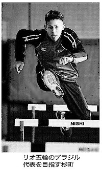 「タタン、タン。ハードルを飛び越えていく音が、小気味よく響く。最初の5台、もしくは3台のハードル間を12歩で走る。世界でも異色のストライドの広さだ。『でも見てほしいのは後半の13歩。前半にためた力を生かす』。1メートル85の長身に加え、並外れたバネを持つからこその技だ。(中略)目標はリオ五輪の決勝。そこでスタートラインに立つ姿を想像すると、思わず笑みがこぼれる。『どうしても頭のなかはリオ五輪になってしまう。結果を出さないと、応援してくれる人に申し訳ない』。ブラジルと日本の技術が詰まったハードリングで、この夏、両国を熱狂させるつもりだ。」