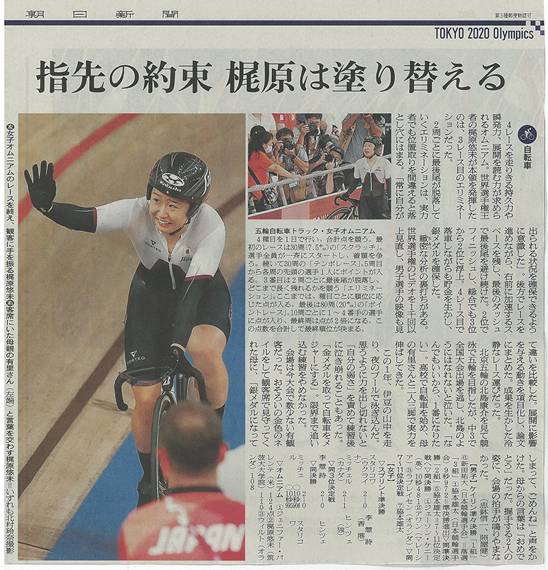 東京オリンンピック最終日に行われた自転車女子オムニアムにてタイケン学園スポーツアドバイザー梶原悠未さんが、この競技では日本人女子初の銀メダルに輝きました。
