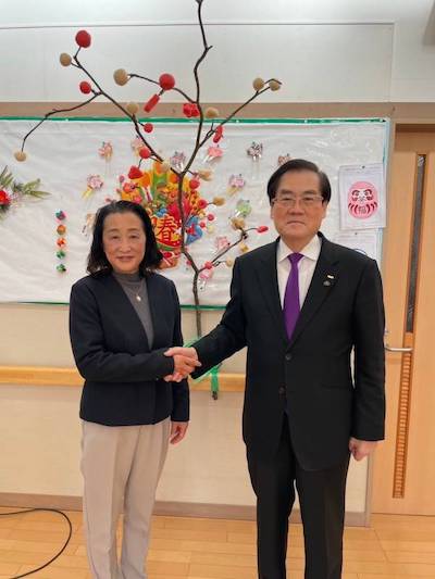 (柴岡三千夫理事長と桑原めぐみ前理事長)