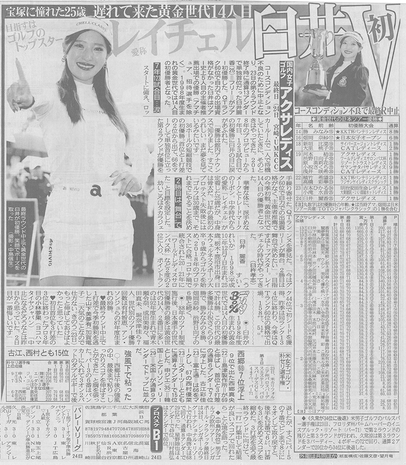 アクサレディスゴルフトーナメント in MIYAZAKI 2024」(3/22~3/24開催)にて臼井麗香さん(日本ウェルネス高校・日本ウェルネス大学卒業)がツアー初優勝を飾りました。